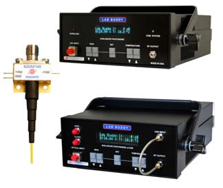APD Lab Buddy內(nèi)置程控偏壓源和溫度控制器,可以極大的改善APD的增益穩(wěn)定度和可靠性。可以通過(guò)前面板或者通過(guò)程控計(jì)算機(jī)設(shè)置偏置電壓和溫度??梢詫?shí)時(shí)監(jiān)控APD的偏置電壓,溫度和平均直流光電流。APD Lab Buddy封裝可集成時(shí)鐘恢復(fù)單元(CDR),提供3R(接收,重塑,和重定時(shí))解決方案。抖動(dòng)容限可達(dá)0.6UIp-p,并且接口易于和誤碼率測(cè)試平臺(tái)連接。